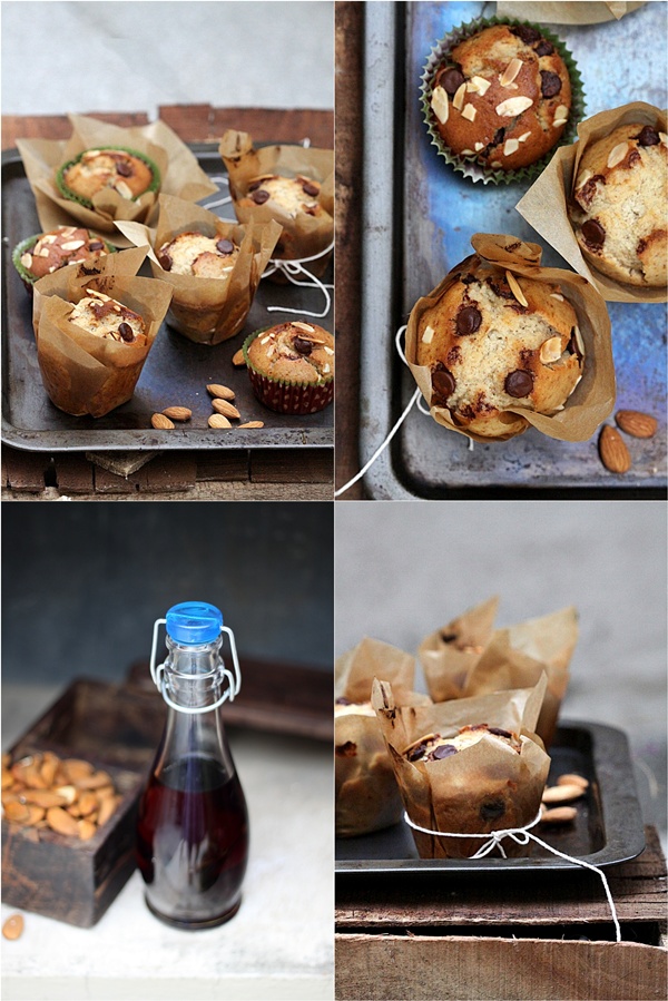 - Alternatively add the flour/almond meal mix with milk until just uniformly mixed. Donot over mix. {Thermomix: Add the milk and flour/almond meal mix and mix on reverse speed for 30 seconds, scraping sides once or twice}. Fold in the chocolate chips, and sprinkle over with flaked almonds if desired.
