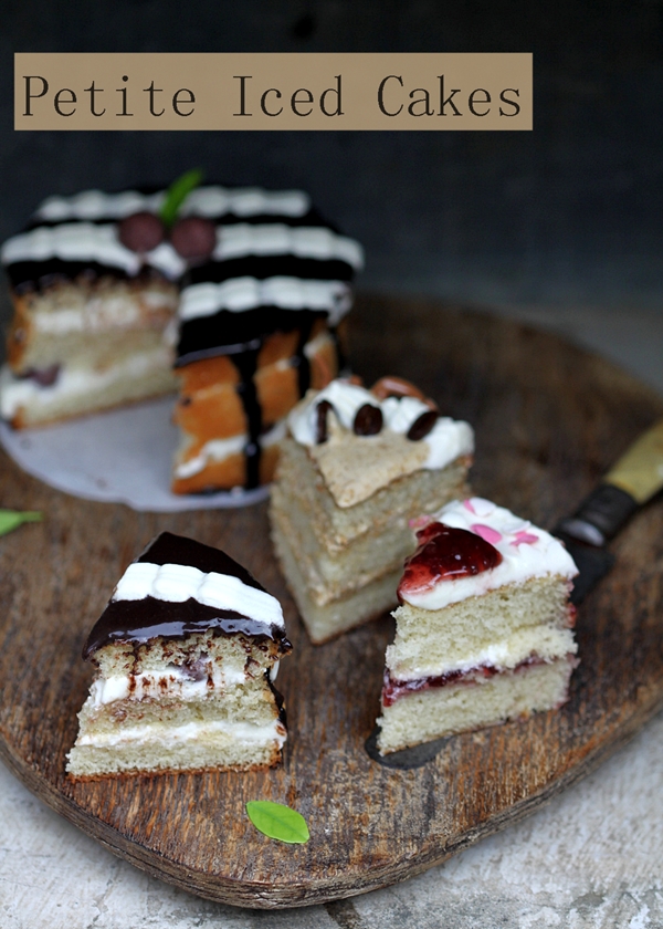 Petite Iced Cakes … Coffee Cream, Raspberry Cream & Chocolate Cream