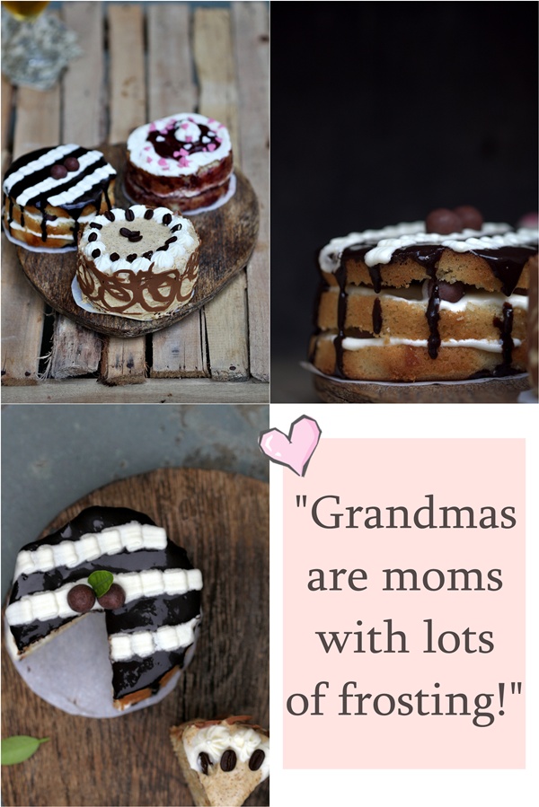 So come, put your best baking skills forward and bake something sweet to celebrate Grandparents Day … a desert that might be a family speciality, a dessert that might be just the thing to bring a smile to their face, or one that you can surprise them with. When I looked at these little almost crooked cakes, I heard the junior teens voice deep in my head, ” Why does Nana always keep laughing so loudly at everything, I mean EVERYTHING?”
